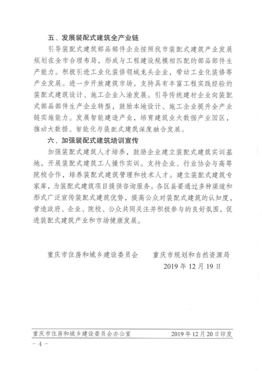 發(fā)展裝配式建筑,是深入推進(jìn)建筑業(yè)供給側(cè)結(jié)構(gòu)性改革,促進(jìn)建筑工業(yè)化和建筑產(chǎn)業(yè)現(xiàn)代化的重要舉措。為落實(shí)《關(guān)于大力發(fā)展裝配式建筑的實(shí)施意見(jiàn)》(渝府辦發(fā)〔2017〕185號(hào))和《關(guān)于進(jìn)一步促進(jìn)建筑業(yè)改革與持續(xù)健康發(fā)展的實(shí)施意見(jiàn)》(渝府辦發(fā)〔2018〕95號(hào))文件精神,加快推進(jìn)裝配式建筑發(fā)展,促進(jìn)建筑產(chǎn)業(yè)現(xiàn)代化,推動(dòng)建筑業(yè)高質(zhì)量發(fā)展,經(jīng)市政府同意,現(xiàn)將有關(guān)事項(xiàng)通知如下: