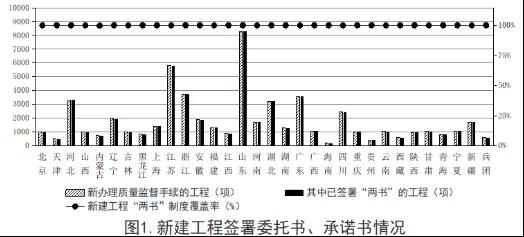 2019年第三季度,全國新辦理質(zhì)量監(jiān)督手續(xù)的工程共56618項,其中,已簽署法定代表人授權(quán)書、工程質(zhì)量終身責任承諾書的工程有56616項,覆蓋率為99.99%,除內(nèi)蒙古自治區(qū)外,其他30個省(區(qū)、市)和新疆生產(chǎn)建設(shè)兵團覆蓋率均達100%。