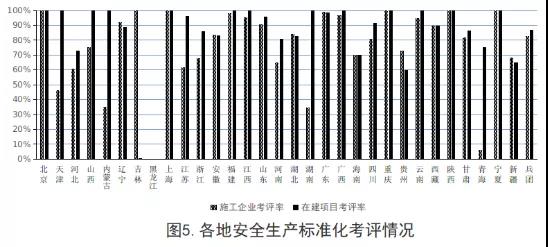 截至2019年第三季度,各地建筑施工企業(yè)安全生產(chǎn)標準化考評率平均為76.06%,北京市、吉林省、上海市、重慶市、陜西省、寧夏回族自治區(qū)6個省(區(qū)、市)考評率達100%;在建房屋市政工程項目考評率平均為84.73%,北京市、天津市、山西省、內(nèi)蒙古自治區(qū)、上海市、福建省、江西省、湖南省、廣西壯族自治區(qū)、重慶市、云南省、陜西省、寧夏回族自治區(qū)13個?。▍^(qū)、市)考評率達100%。