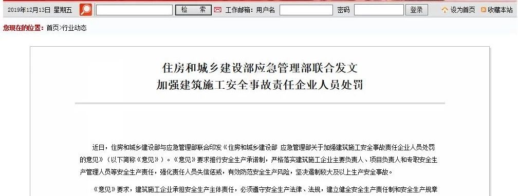 11月20日、住房和城鄉(xiāng)建設部和應急管理部發(fā)布關于加強建筑施工安全事故責任企業(yè)人員處罰的意見。